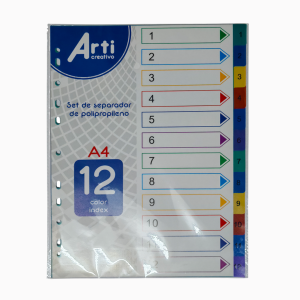 Separador numérico plástico colores A4 del 1 al 12 Arti
